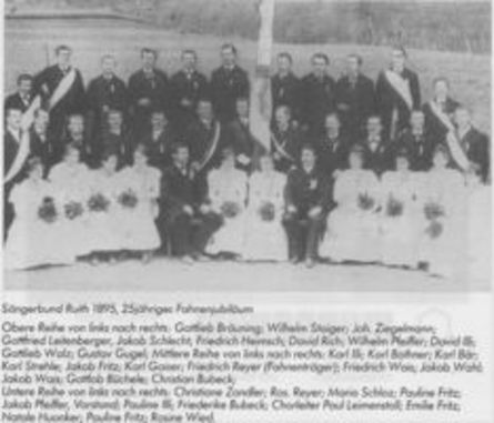 Die Sangesbewegung dieser Zeit machte auch vor den Toren der damals rund 900 Einwohner zählenden Gemeinde Ruit nicht halt, und auch hier war es der örtliche Lehrer, der die Idee in die Tat umsetzte. Der 39-jährige Jakob Herrigel scharte 28 sangesfreudige Männer um sich und gründete 1863 zunächst unter dem Namen »Liederkranz« in Ruit den ersten Gesangverein. Neben dem Wunsch zur »Pflege der Sangeskultur« in geselliger Runde lag dem Gründer zweifellos auch das Wohl der ihm als Pädagoge anvertrauten Jugend am Herzen. So lesen wir denn in der zwei Jahre später von 34 Mitgliedern beschlossenen Satzung: